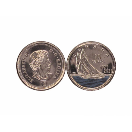 10 центов - 100 лет шхуне BLUENOSE, Канада, 2021 год, цветная