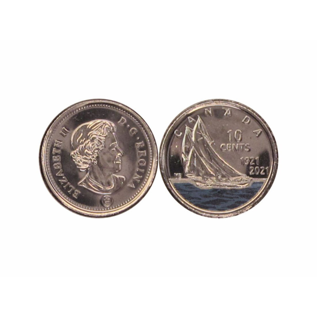 10 центов - 100 лет шхуне BLUENOSE, Канада, 2021 год, цветная