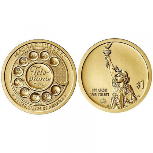 1 доллар - "Американские инновации №7 - Первый дисковой номеронабиратель, телефон", США, 2020 год, двор D