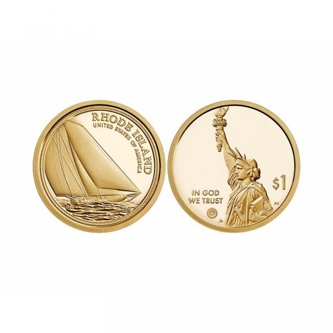 1 доллар - "Американские инновации №14 - Яхта Натанаэля Херрешоффа", США, 2022 год, двор D