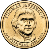 1 доллар 2007 год. Президент США № 3, Томас Джеферсон
