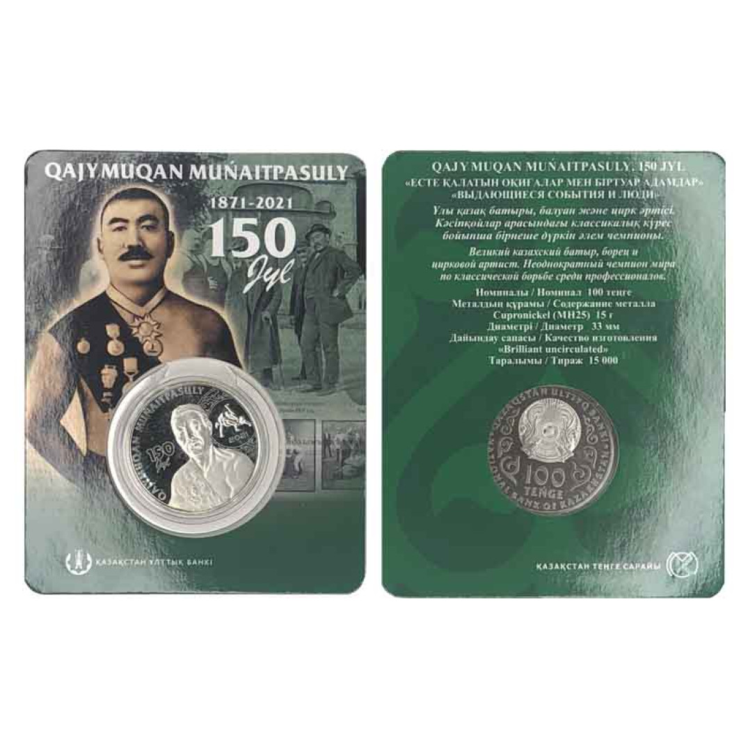 100 тенге - Хаджимукан Мунайтпасов, Казахстан, 2021 год, в блистере