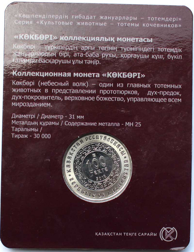 100 тенге - Небесный волк, Казахстан, 2018 год, в блистере