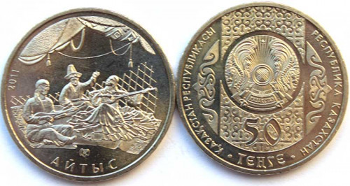 50 тенге - Национальные обряды - Айтыс, Казахстан, 2011 год
