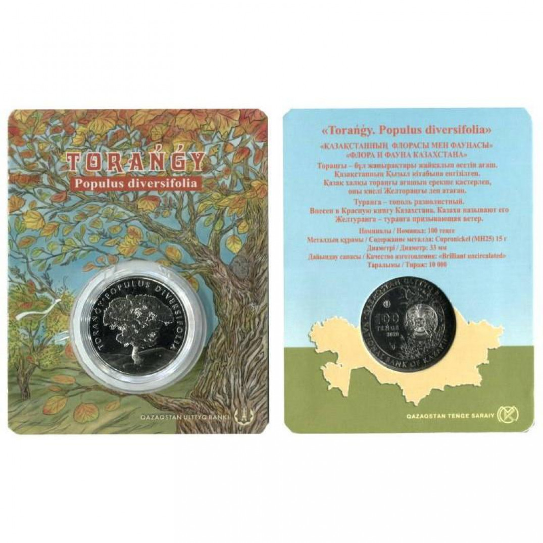 100 тенге - Тополь разнолистный , Казахстан, 2020 год, в блистере