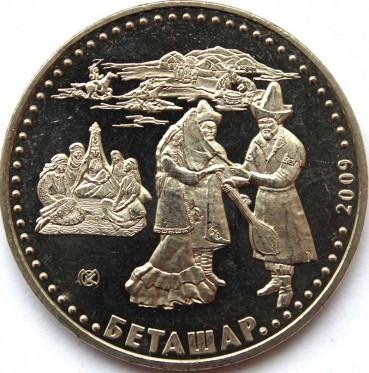50 тенге - Национальные обряды - Беташар - Обряд открывания лица невесты, Казахстан, 2009 год