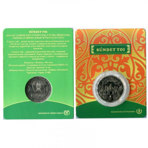 100 тенге -Национальные обряды-Сундет Той , Казахстан, 2020 год, в блистере