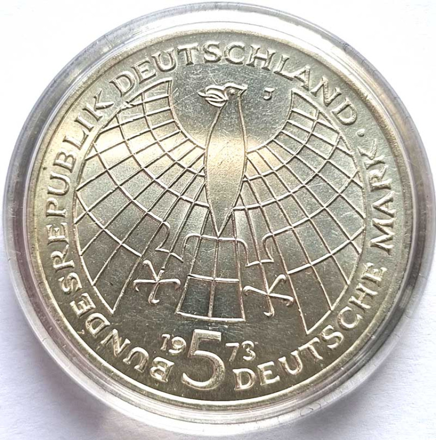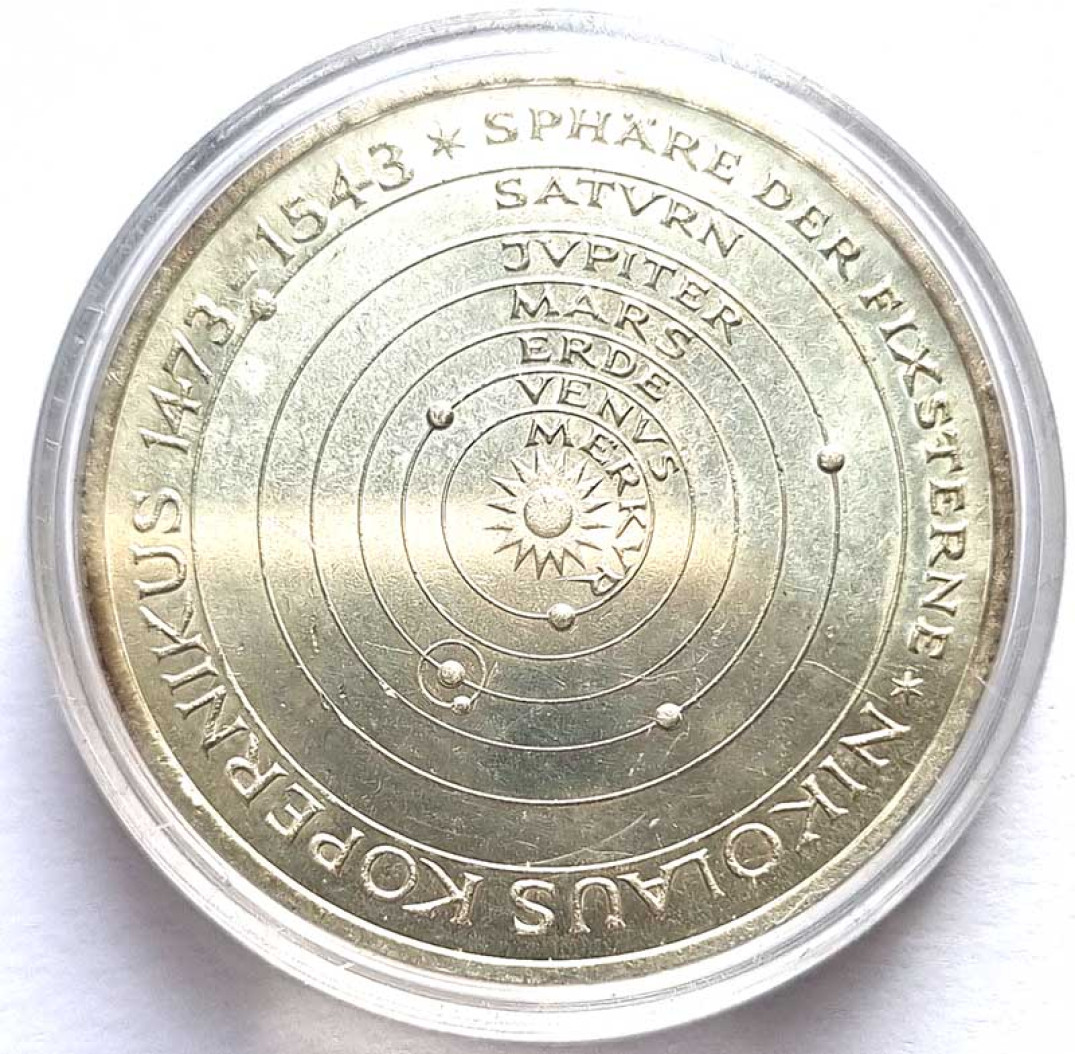 5 марок - 500 лет со дня рождения Николая Коперника, Германия, 1973 год, серебро