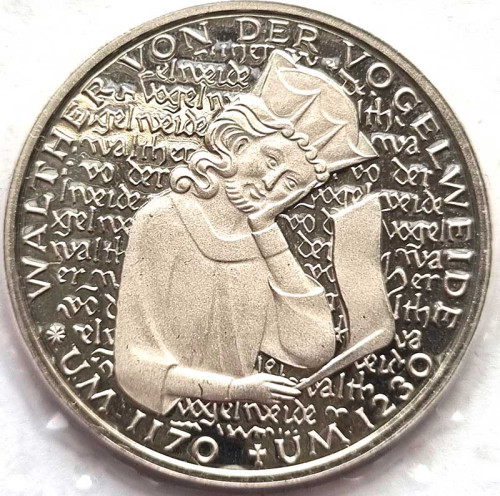 5 марок - 750 лет со дня смерти Вальтера фон дер Фогельвейде, Германия, 1980 год, в запайке