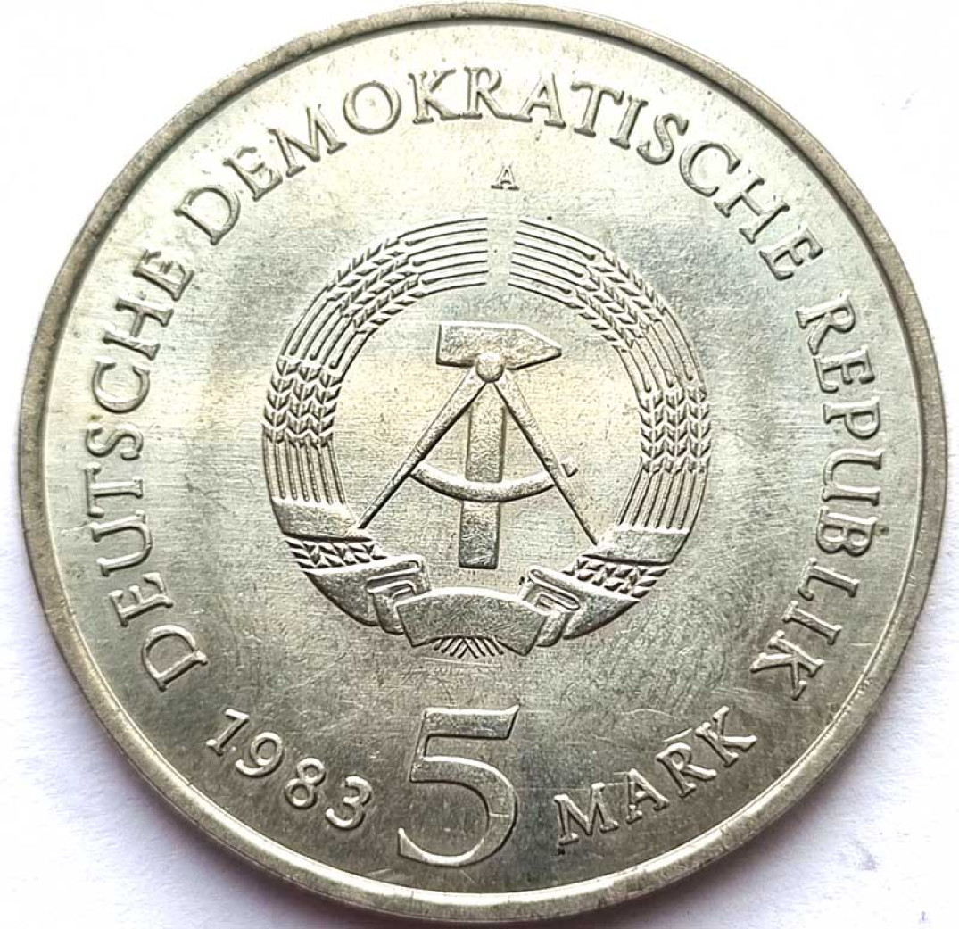 5 марок - Родной дом Мартина Лютера в Эйслебене, Германия, 1983 год