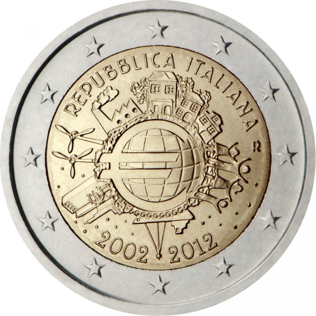 2 евро - 10 лет евро наличными, Италия, 2010 год, UNC