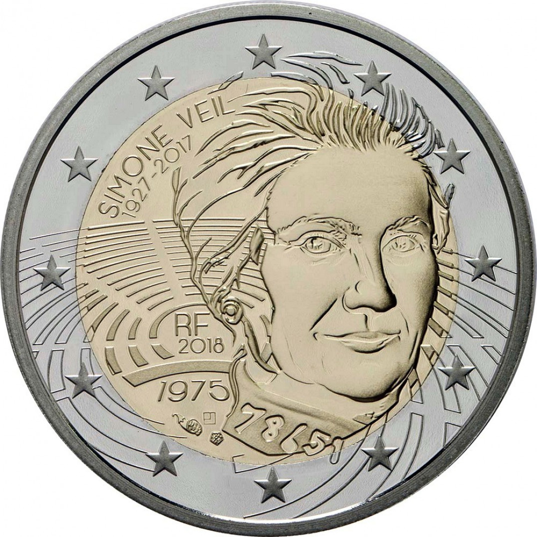 2 евро - Симона Вейль, Франция, 2018 год, UNC