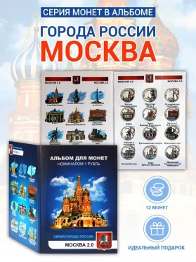 Набор монет - "Города России" Москва, (12 монет в альбоме)