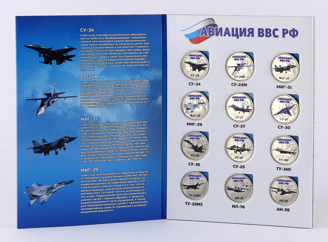 Набор монет - Авиация ВВС РФ (12 монет в альбоме)