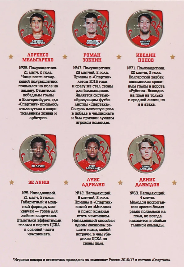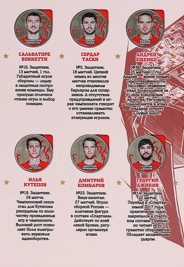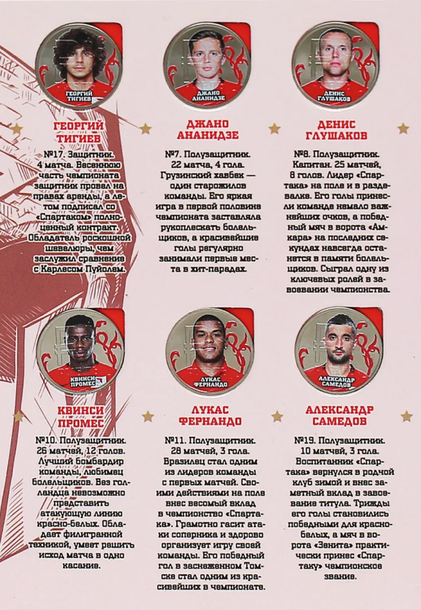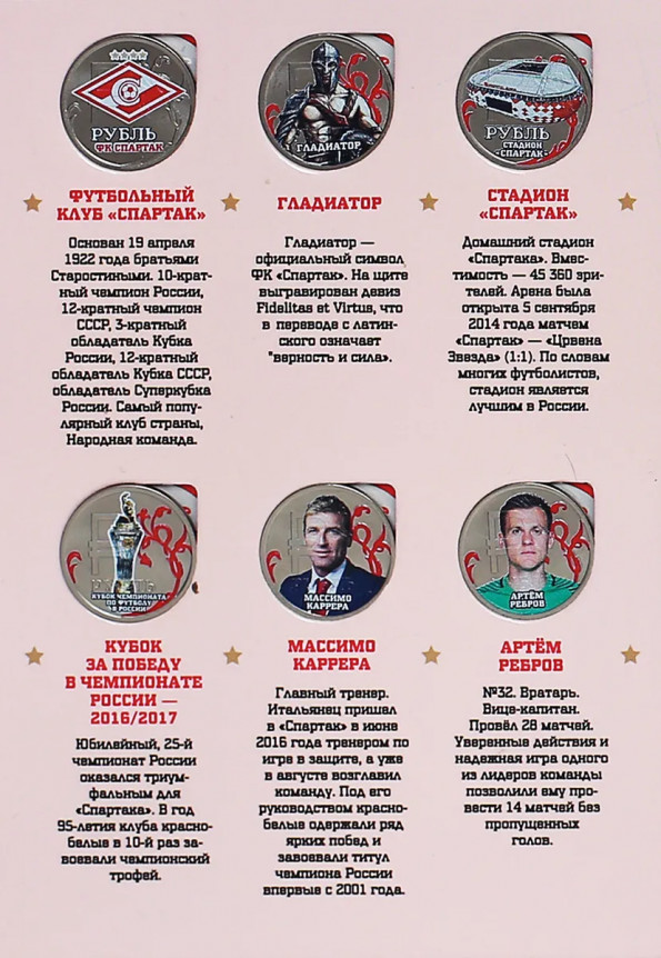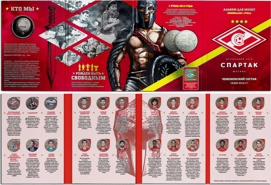 Набор монет - Чемпионский состав ФК Спартак Москва (24 монеты в альбоме)