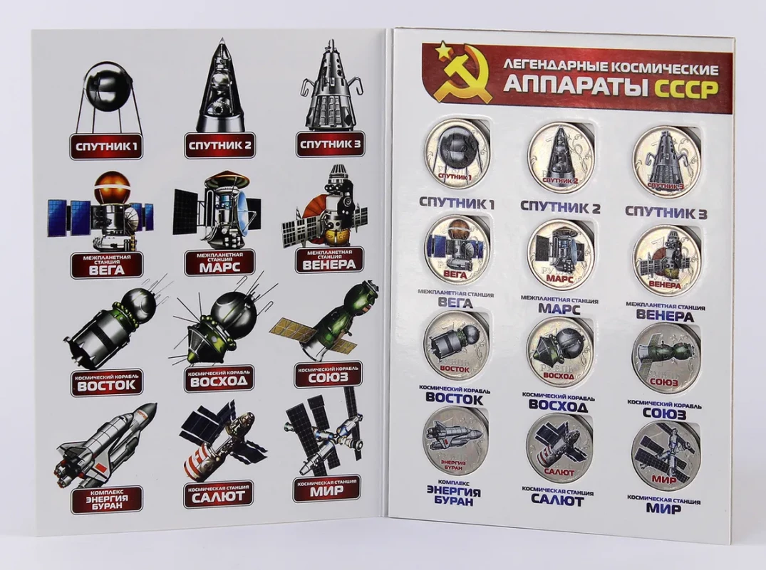 Набор монет - Космические аппараты СССР (12 памятных монет в альбоме)