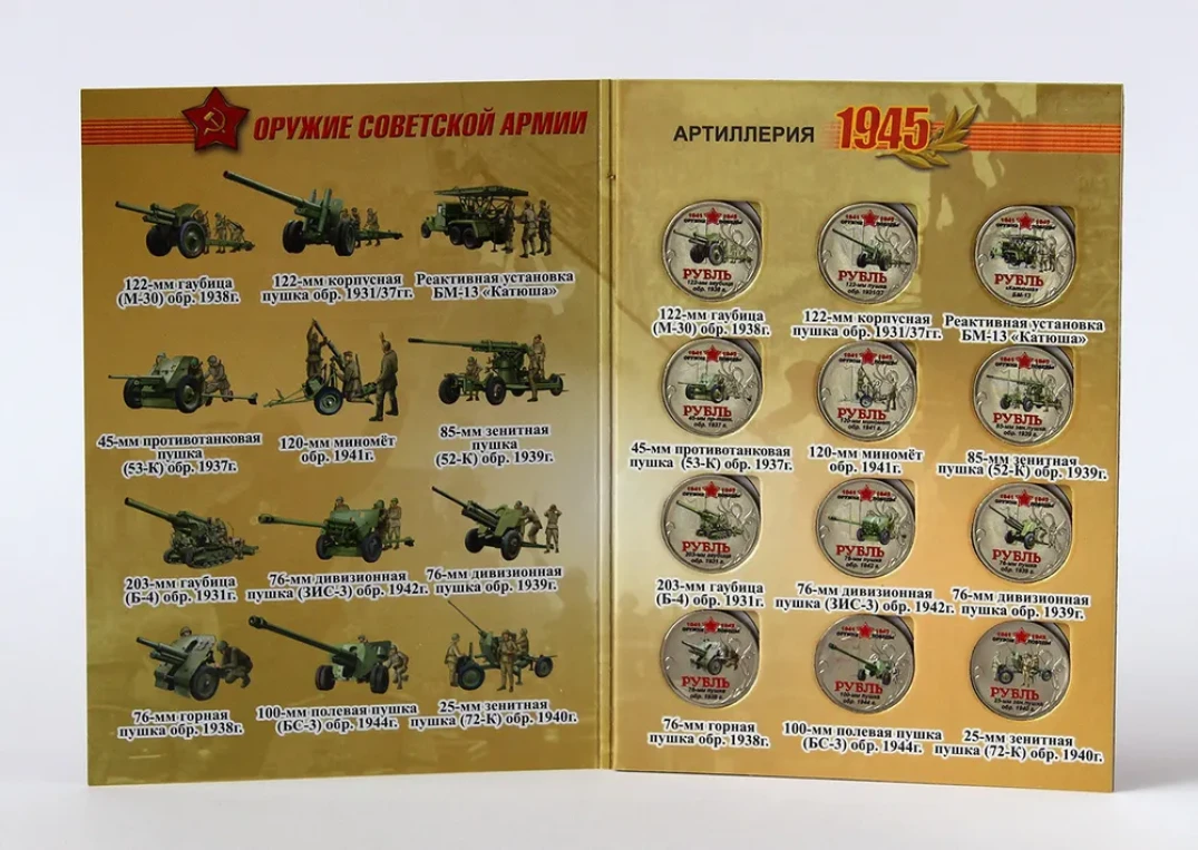 Набор монет - Оружие советской армии - Артиллерия, (12 монет в альбоме)