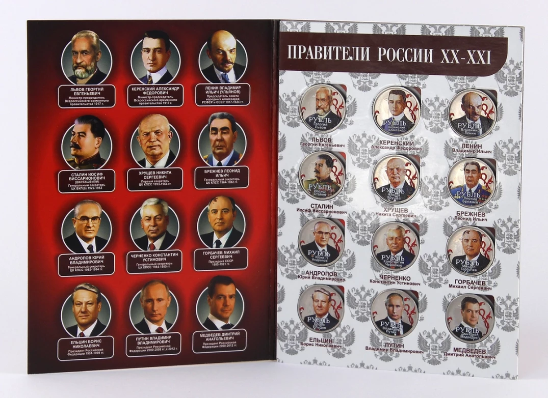 Набор монет - Правители России (12 памятных монет в альбоме)