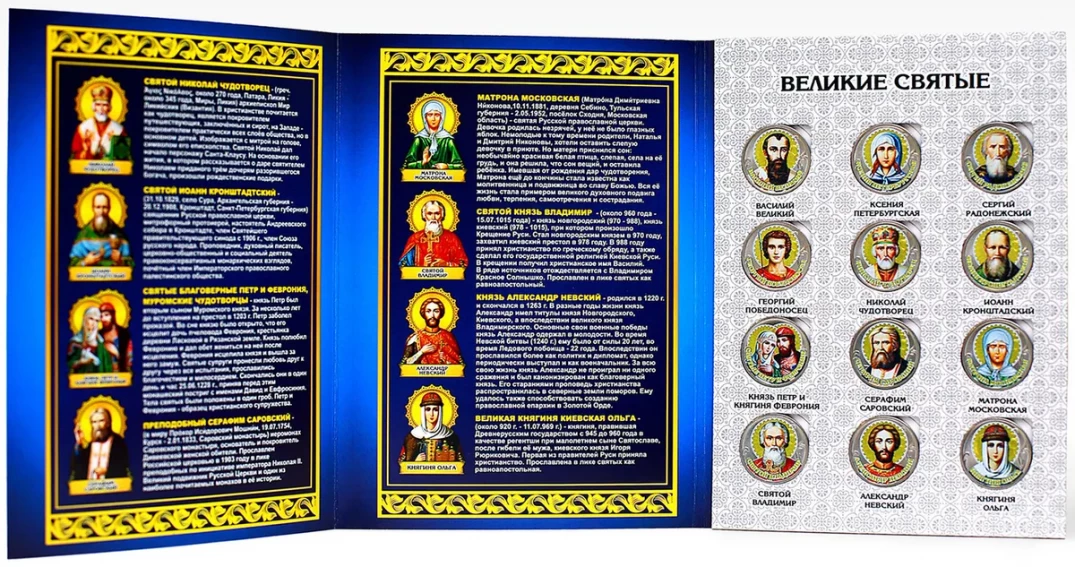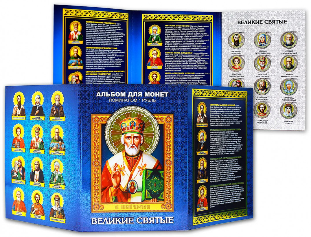 Набор монет - Великие Святые, (12 монет в альбоме)