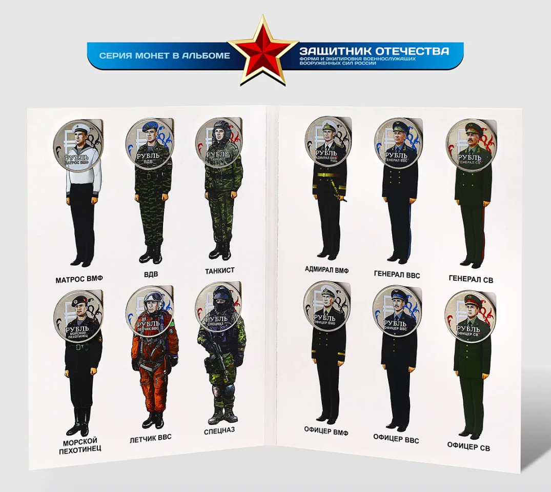 Набор монет - Защитник Отечества, (12 монет в альбоме)
