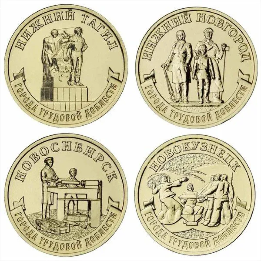 10 рублей - Города трудовой доблести - Н.Новгород,Н.Тагил,Новокузнецк,Новосибирск, 2023 год