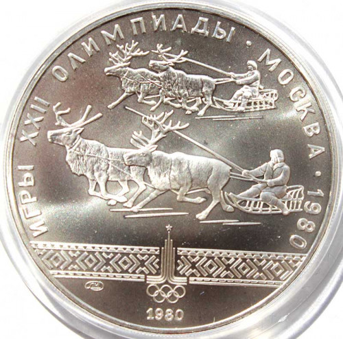 10 рублей - Гонки на оленях, 1980 год, серебро