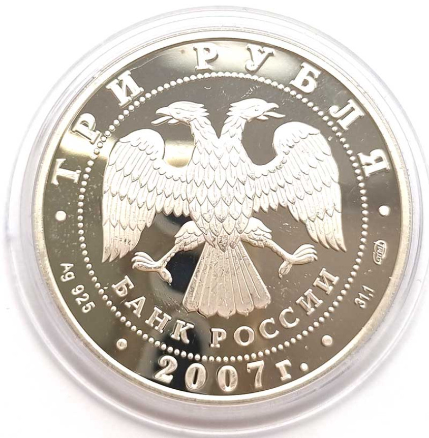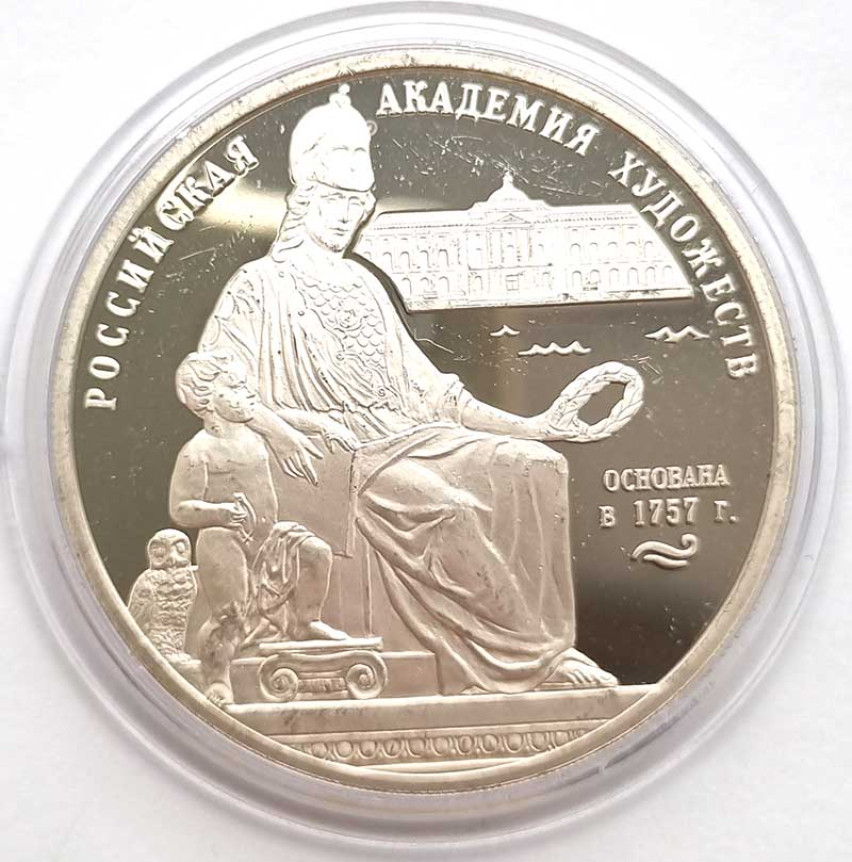 3 рубля - 250 лет Российской Академии художеств, 2007 год, серебро