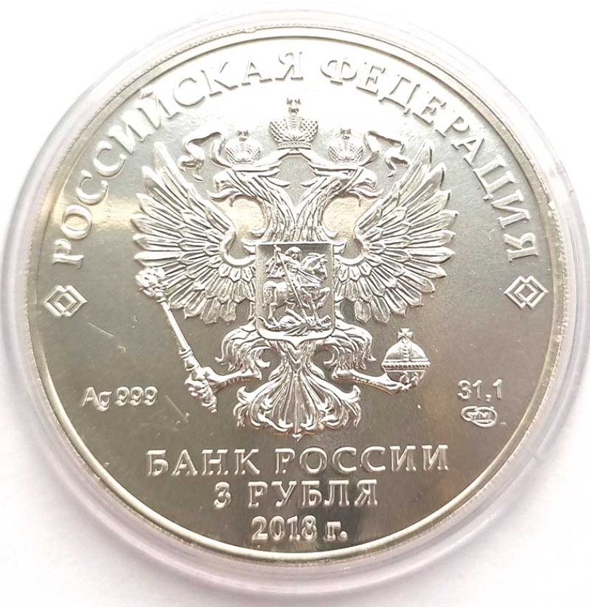 3 рубля - Чемпионат мира по футболу 2018, Россия - Кубок, 2018 год, серебро