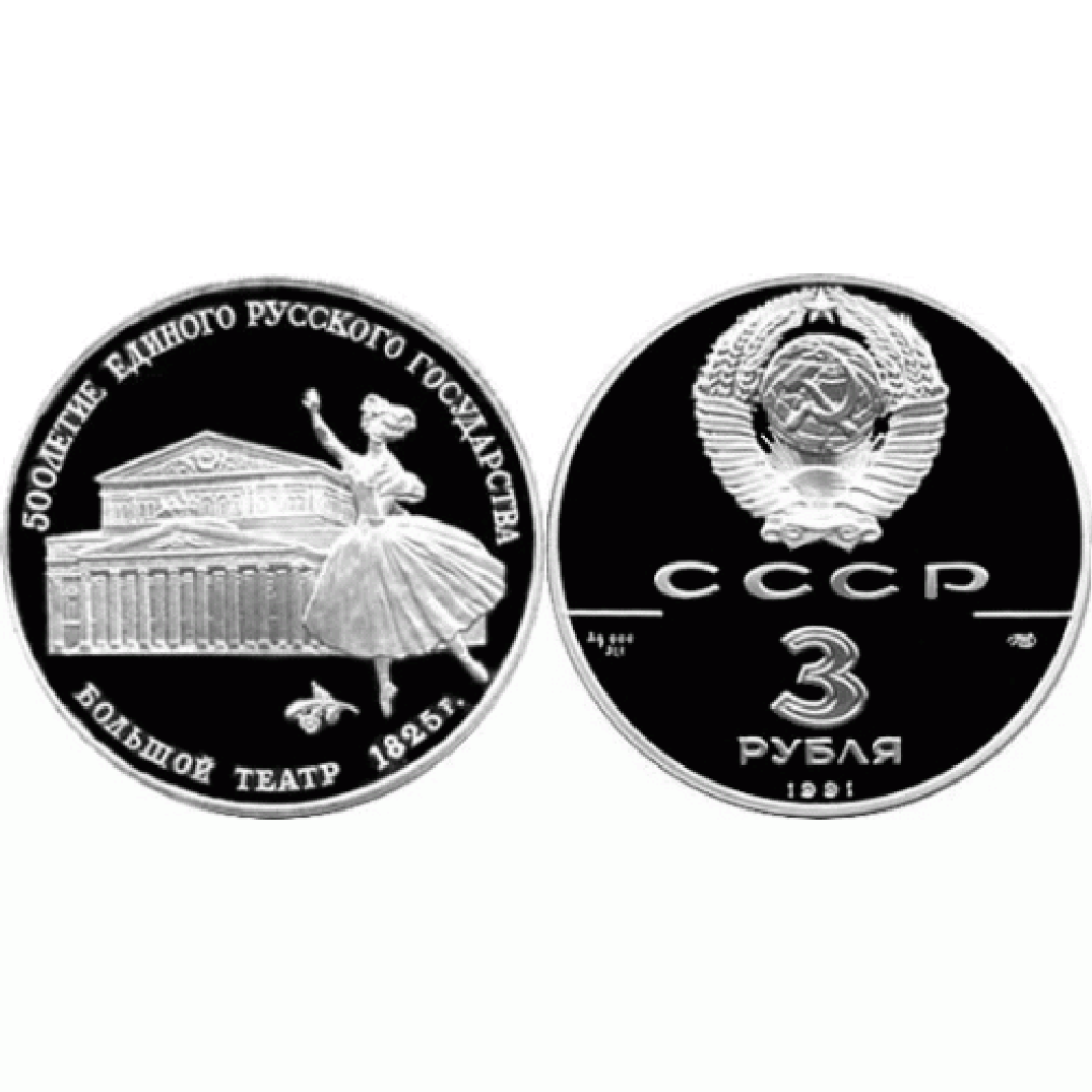 3 рубля - Большой театр, Москва, 1991 год, PROOF
