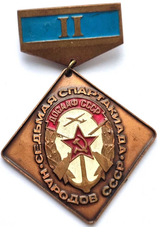Значок - Седьмая спартакиада народов СССР ДОСААФ 2-е место, тяжелый