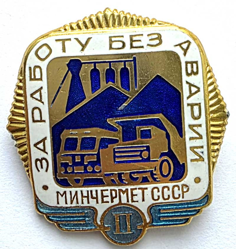 Значок - За работу без аварий минчермет СССР, тяжелый