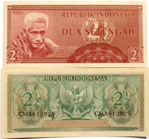 Банкнота 2 1/2 рупии 1956 года - Индонезия, UNC