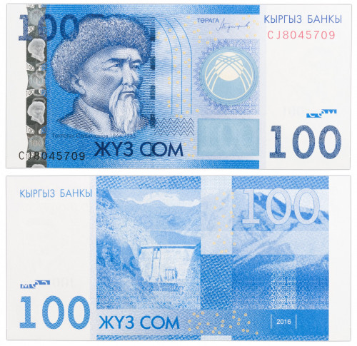 Банкнота 100 сом - Киргизия, 2009-2016 гг, UNC