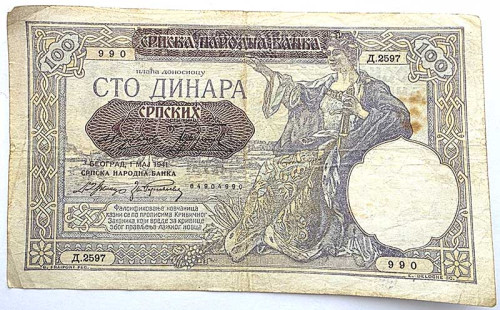 Банкнота 100 динар - Югославия, 1941 год