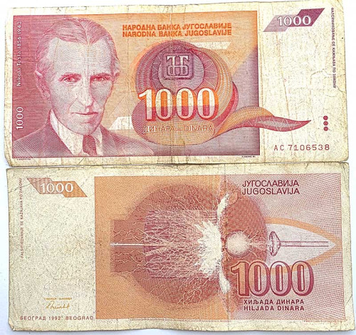 Банкнота 1000 динар - Югославия, 1992 год