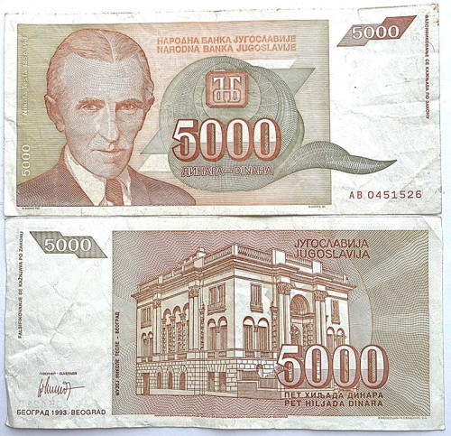 Банкнота 5000 динар - Югославия, 1993 год